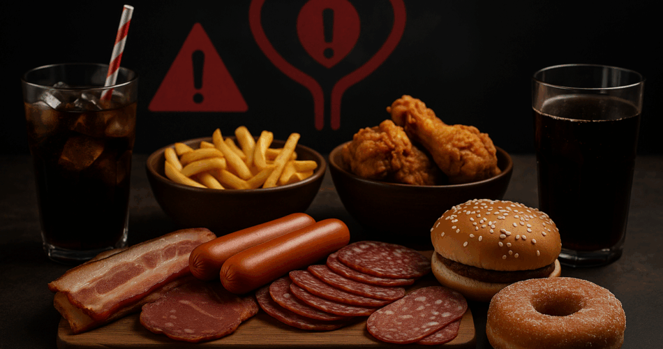 - Processed meats, high-fat dairy, refined sweets, sugary drinks, fried foods, ultra-processed soy, late-night alcohol/spice.
